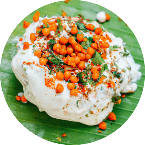 Mini vadas topped with curd