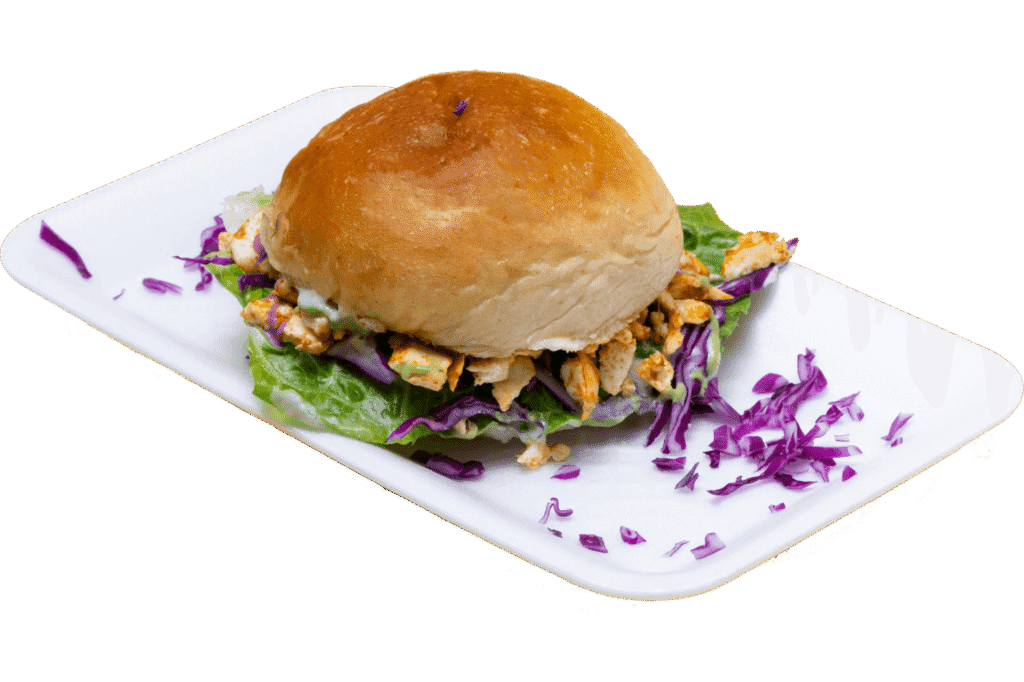 Soft bun stuffed with flavorful vegetarian shawarma filling