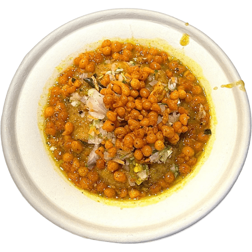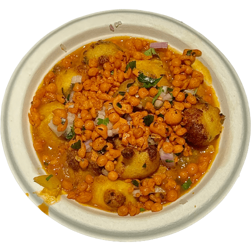 Golden paniyarams tossed with chutneys, curd, and spices for a tangy twist.