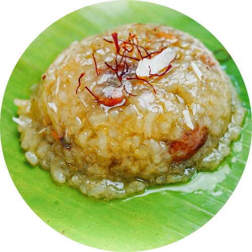 Sweet rice cooked with jaggery.