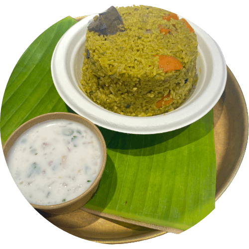 Karnataka-style biryani served in a leaf cup