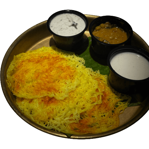 Soft string hoppers infused with saffron for a rich flavor