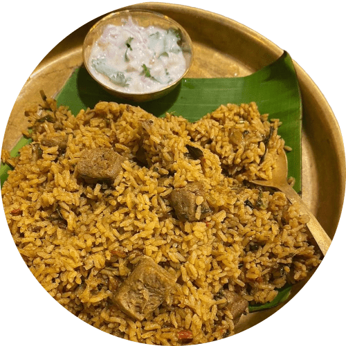 A variety of South Indian rice dishes and biryanis, cooked fresh with authentic spices.