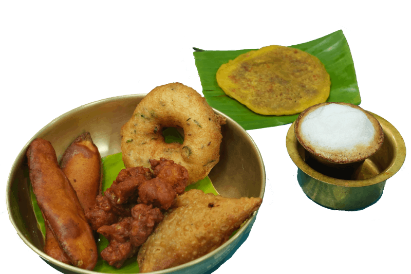 A mix of freshly made South Indian snacks served straight from the live counter.